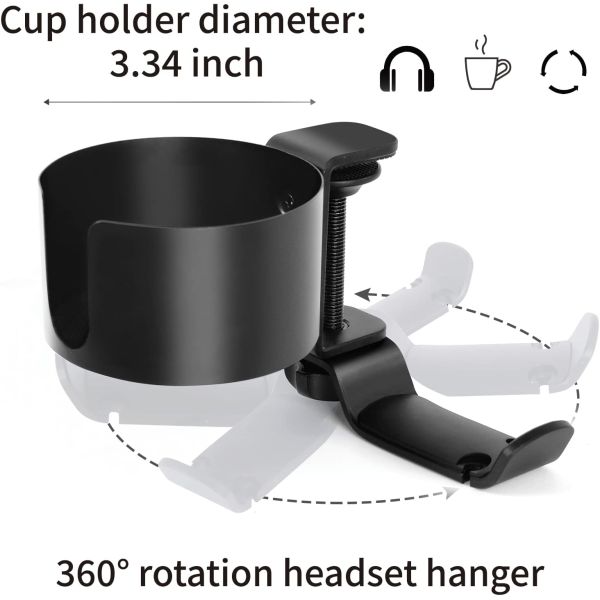 Product name: 2 in 1 Desk Cup Holder with Headphone Hanger, Anti-Spill Cup Holder