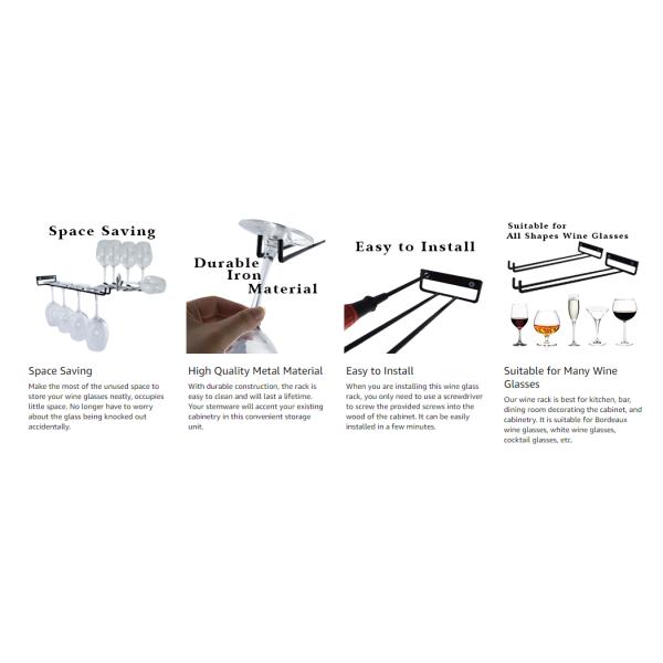 * uD83DuDC4DSPACE SAVING - Single wine glass rack holds up to 4 glasses, you can choose how many rows installed in accordance with the cabinet, regardless of the number of cups, wine glass racks are independent. With this set of 4 glasses holder, you can easily create more room for your counter top, cabinets, bar cart, server, buffet, hutch, credenza and more.