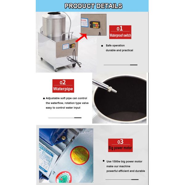 3.Peeled fast clean, quiet and durable, stainless steel body, high-power large-capacity, high efficiency