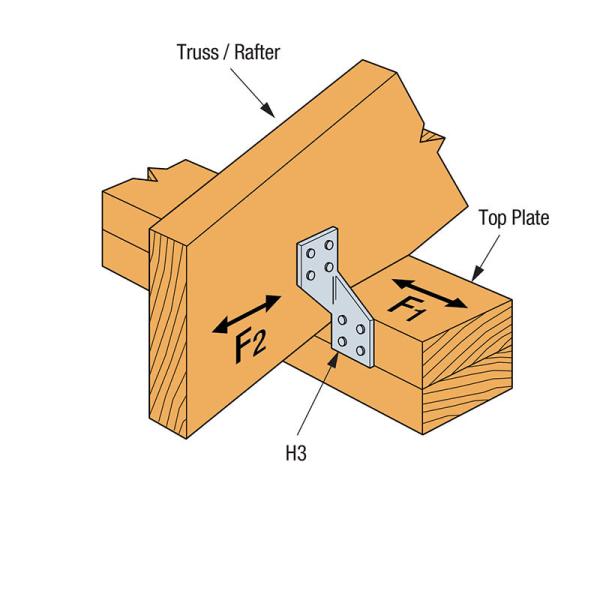 2) To provide a connection between trusses/rafters and the top plate of the wall to resist high-wind/seismic forces