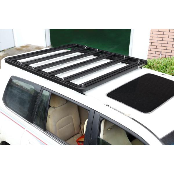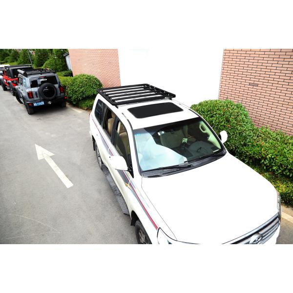 of height limit. 2. Customized according to the vehicle type. 3. Splint design without drilling installation, non-destructive to the vehicle. 4. Electrophoresis and powder coating with UV resistance,will not easily oxidize and fade. 5. Tailored to TOYOTA LAND CRUISE LC200 . |