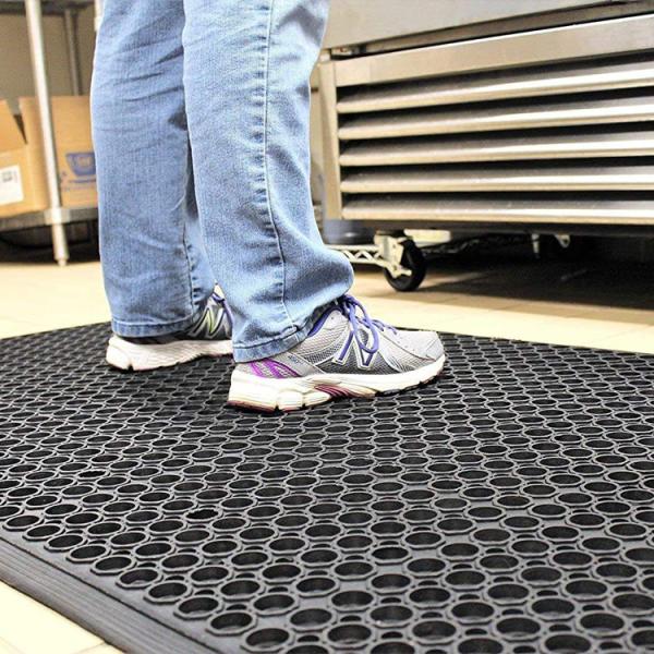 Comfortable: No matter what the job is at hand, you should always remain comfortable. This type of anti-fatigue mat is very popular with chefs, bartenders, cashiers, and guards. The rubber material in this non-slip floor mat relieves the heels and ankles of built-up pressure, making your feet feel nice and relaxed. This is the perfect mat to keep workers comfortable and productive.