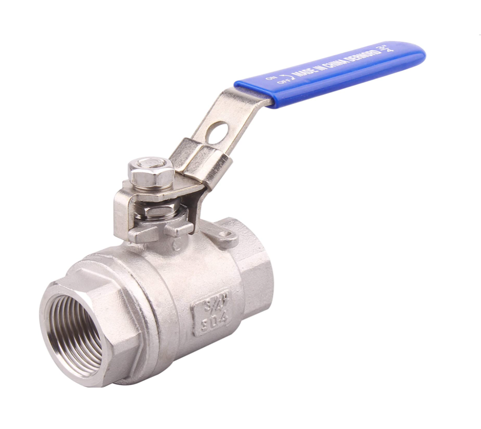 corrosion resistance than Brass/copper and has a vinyl-covered lever handle with LOCKING DEVICE for on/off manual control.Stainless steel ball valves with PTFE seals & seats offer excellent corrosion resistance for most applications. Stainless steel & PTFE work well in applications including but not limited to water, oil, gas/air, light alkali's and acids, biodiesel, fuels and alcohols. These ball valves are fitted with tight seals to ensure no leakage and a long lasting seal after many years of frequent usage.All metal pieces of our valves are SS304, including the nuts and other exterior metals.Other manufacturers cut costs by using 201 Stainless steel on these parts which results in a rusty looking valve over time. our manufacturers its 2-piece ball valves with all 304 Stainless steel parts so you can be sure there won't be any rust formation from external air or water exposure over time. | ||||||