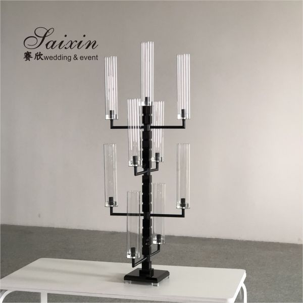 Product name: | ZT-558B New custom tall tube black crystal candlestick 9 arms