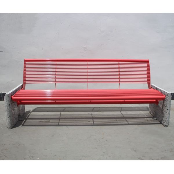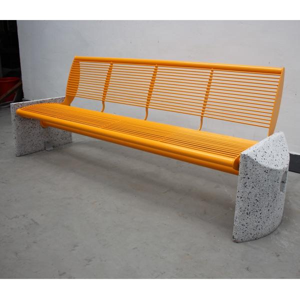 3 Seater Outdoor Steel Park Benches Seats With Backrest Cement Stone Base