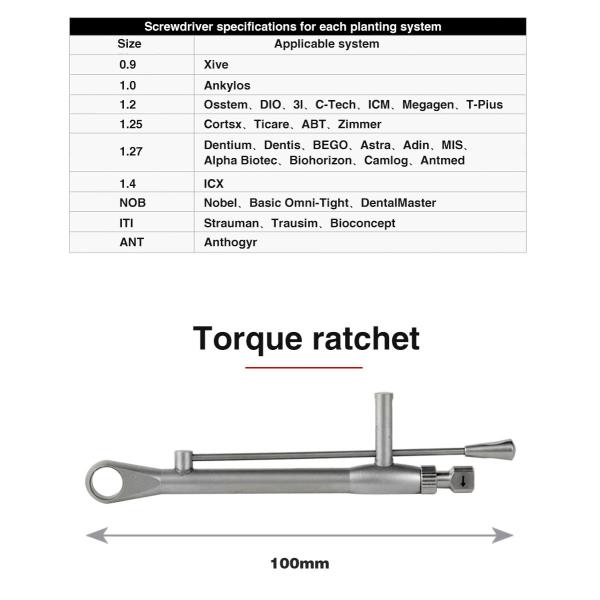 This kit is used to remove and fasten implant prosthetics. It