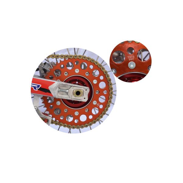Using high hardness lightweight aluminum alloy ring, new type of site special tires(80-100-21,100-90-19), bolding stainless stell spokes, thus, drivers compete in the professional field, more trafficability charateristic, more operability