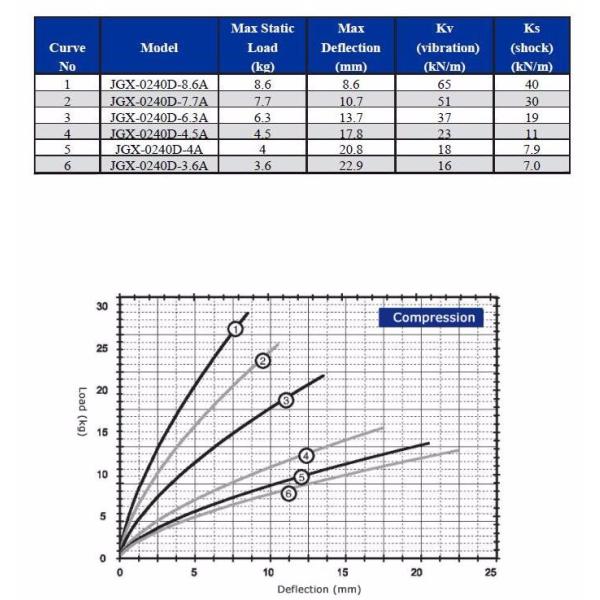 The maximum static load of the JGX-0240 series wire rope isolator is from 3.6kg to 8.6kg, which can be used in any exquisite equipments or systems which require for noise attenuation.