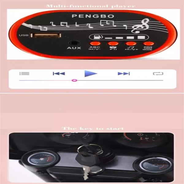 The 5188 children's electric toy car is a powerful children's toy motorcycle that can not only be used for children to drive and play, but also can accommodate parents to ride together. It has features such as multiple mode switching, comfortable seats, and shock absorbers, which are great for babies. Come to a pleasant childhood experience. In addition, it also supports multimedia early education and mobile phone Bluetooth connection, providing a broader learning content for babies. 1. Stable and safe, using a comfortable leather seat design and equipped with a double-door structure, making the ride more comfortable. Comfortable. At the same time, it also has a smooth and slow start function to avoid suddenl scaring the baby. These designs help to improve safety and stability during driving.