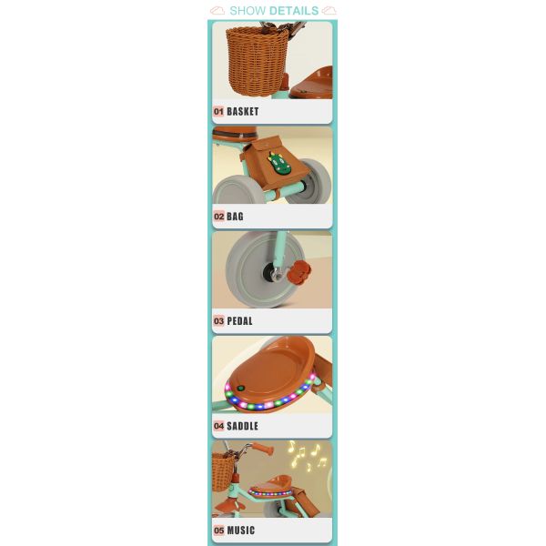 Simple three-wheel, large and comfortable seat, front woven basket, rear large storage bag, light riding