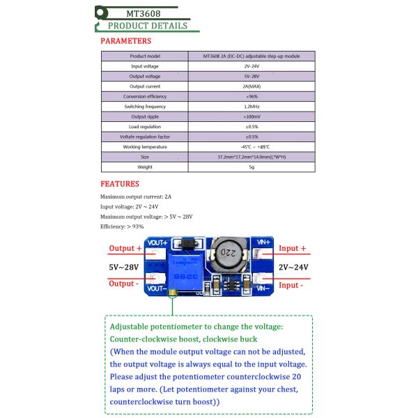 | Product Name: | MT3608 DC-DC boost module 2A boost board |