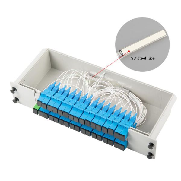 PLC splitters are compact and easy to integrate into various settings, including small spaces within network hubs or in the field. They can be fabricated on a micro-scale, making them ideal for use in optical network devices that require small form factors.