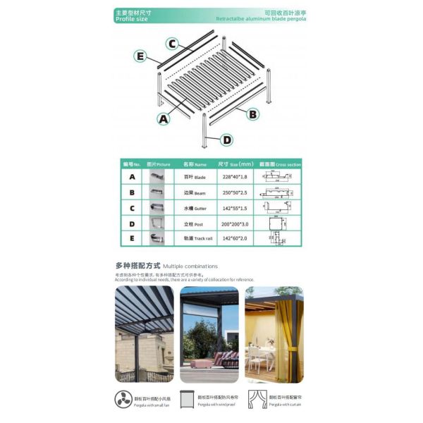| Name | retractalbe aluminum blade pergola |