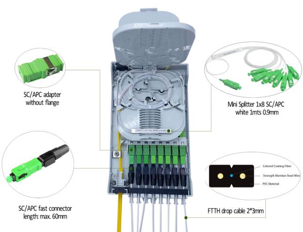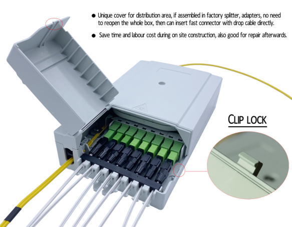 This 8-port FTB008A fiber optic access terminal adopts a 4-layer
