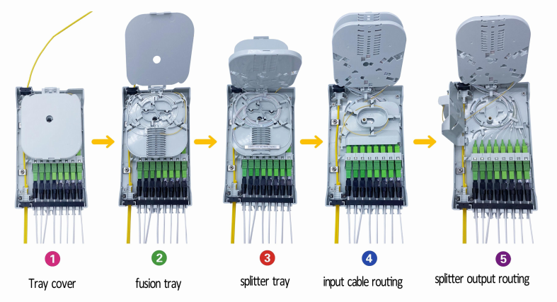 PLC splitter | 3pcs: 1*splice tray, 1*splitter tray, 1*fiber management tray |