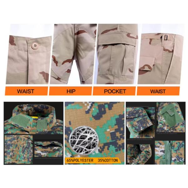 Our Military Tactical Wear is made with T65/C35 fabric, which is a blend of polyester and cotton. This fabric is known for its durability and strength, making it ideal for tactical use.