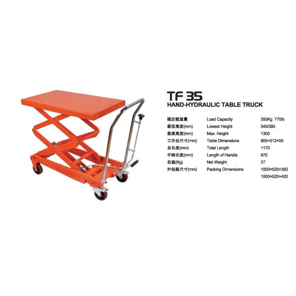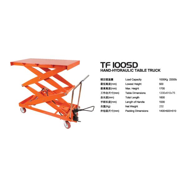 A hand-hydraulic table truck, also known as a hand pallet jack or