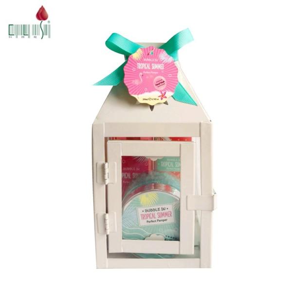 Description | Hurricane lamp (Tin and glass) 210ml shower gel 210ml body lotion 200ml shampoo PVC slice Ribbon and hangtag |