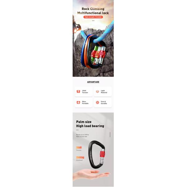 [Safety first in our screw lock design] Our manual screw locks greatly reduce the risk of accidental opening and give you peace of mind for smooth operation. The small, palm-sized design makes it easy to operate with one hand, making these climbing buckles an everyday fixture.