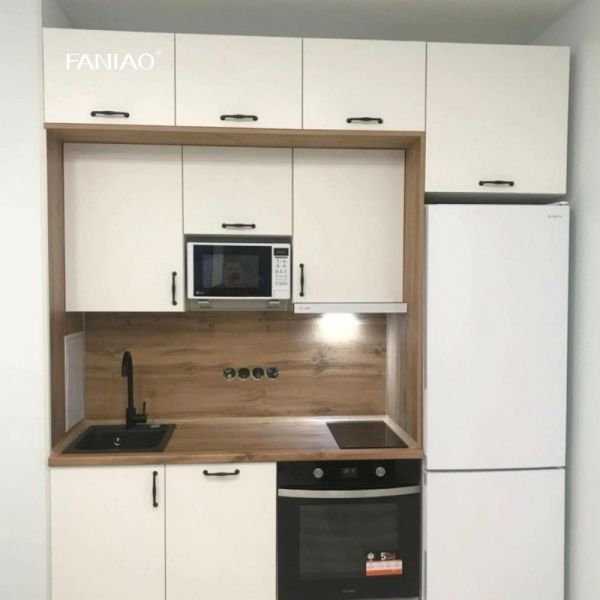 For a kitchenette in apartments with small wooden cupboards and an all-in-one modular kitchen unit, working with Faniao offers the flexibility to create compact, space-efficient kitchens with a high-quality wooden aesthetic. By incorporating modular cabinetry, natural wood finishes, and customizable layouts, these kitchenettes offer both functionality and style for modern apartment living.