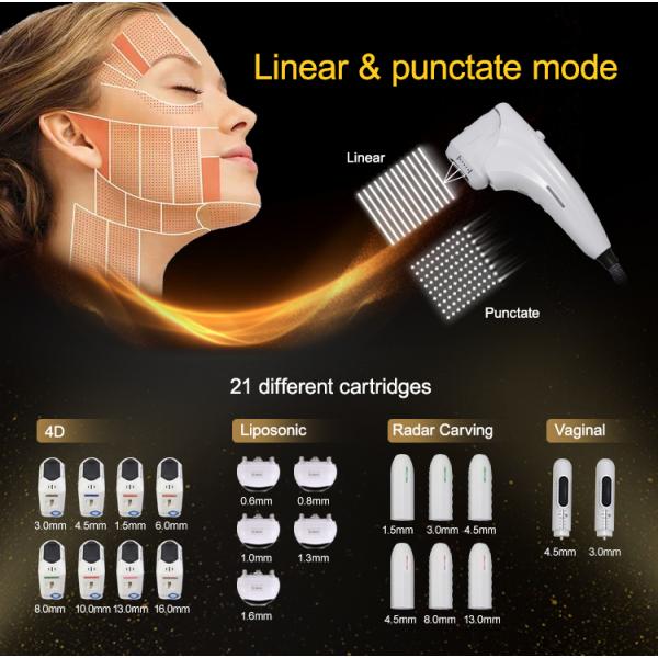 | Standard cartridges: | 4D Hifu With 2pcs (optional), Vaginal Probe With 2 Pcs, Radar Carving Probe With 3 Pcs(optional), Lipo Probe With 2 Cartridges |