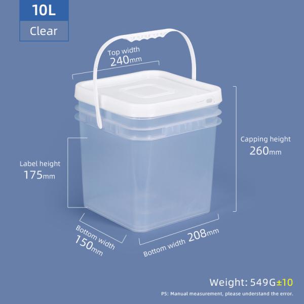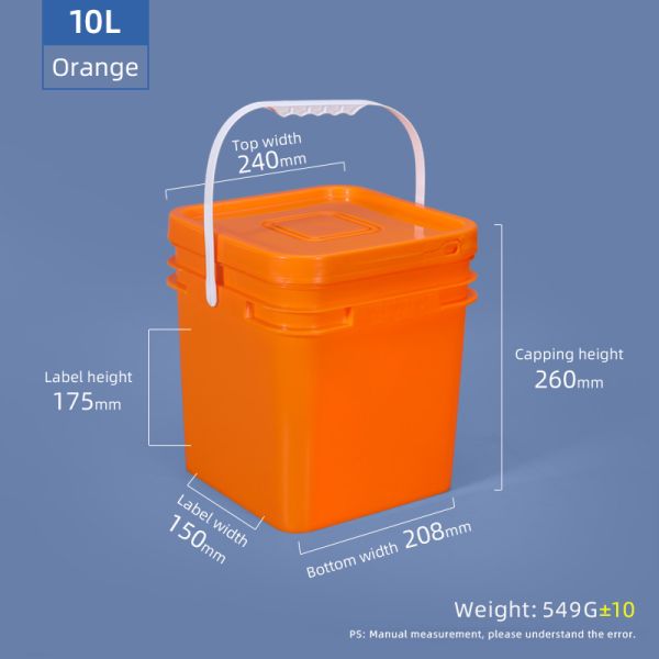 Buy 10L Food Grade Square Plastic Paint Bucket for Multi-Purpose in Home and Kitchen Directly at wholesale prices