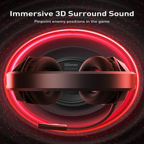 50mm drivers&Switchable Light Noise Cancelling Mic with 120° rotatable design 254g/8.9oz light weight Soft memory protein foam earmuffs Multiple-platform Compatibility 3D Surround Sound