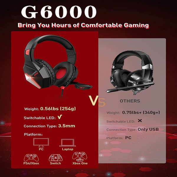G6000 gaming headsets support PS4, PS4 Pro/Slim, New Xbox One, PSP, Nintendo 3DS, Laptop, Computer, Tablet, iPad, Smart phones.
