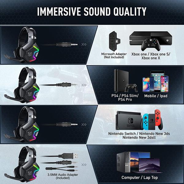 With 7.1 surround sound technology and noise-cancelling headset with microphone, our ONIKUMA gaming headset makes you feel you're actually in the game.Identify your enemies before seeing them. Exact distance and direction of footsteps and gunfire can mean life or death. ONIKMA gaming headphones can really give you an edge in competitive gameplay. Get ready to shine on the battlefiled!