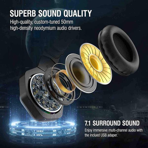 Enjoy superior sound quality and crystal-clear communication with K10 pro gaming headset.ONIKUMA gaming headset with microphone equipped with a premium 50mm neodymium driver that offers immersive sound quality. an anti-noise mic that works perfectly in noisy environments and soft memory foam ear cushions provides lightweight comfort. It hugely augment immersive aural experience, making you feel like in the real battle field. Get ready to shine on the battlefiled!