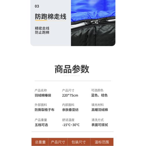 Down cotton sleeping bag for outdoor