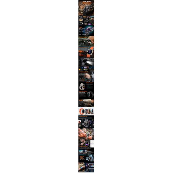 MK86 Sport Smart Watch Flashlight IP68 Waterproof BT Call Blood Oxygen Large Battery