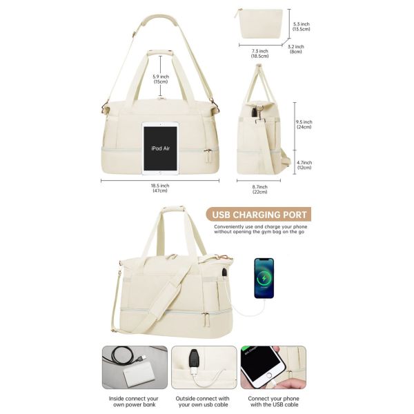 Custom Materials Sports Travel Duffel Bag With Usb Charging Port Wet Dry Separation