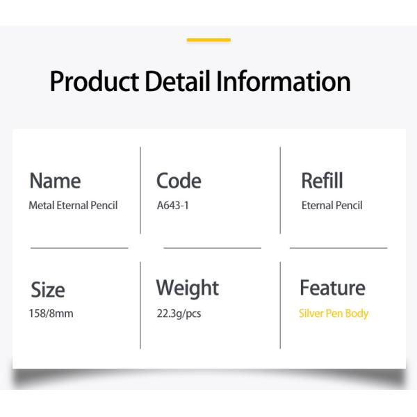 Creative Stationery Elegant Silver Metal Eternal Pencil Erasable Endless Pen For Sketch Writing Design