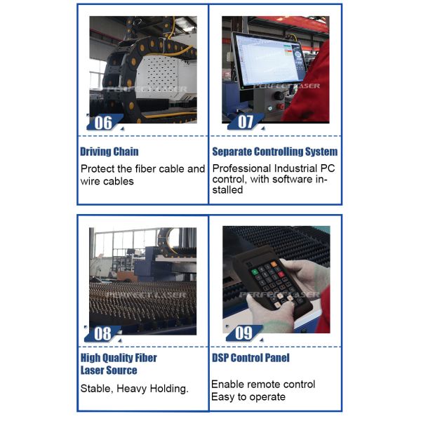 PE-F1325 laser metal cutting machine, as the flagship of Perfect Laser, is a highly favored high-end fiber laser cutting equipment. The machine adopts a sturdy gantry structure, equipped with durable aluminum crossbeams and high-quality Chinese made servo motors, demonstrating excellent design craftsmanship and material selection. PE-F1325 is renowned in the industry for its unparalleled rigidity and reliability, particularly adept at efficiently cutting various metal materials such as aluminum, carbon steel, and stainless steel, making it a leader in the field of metal sheet cutting.