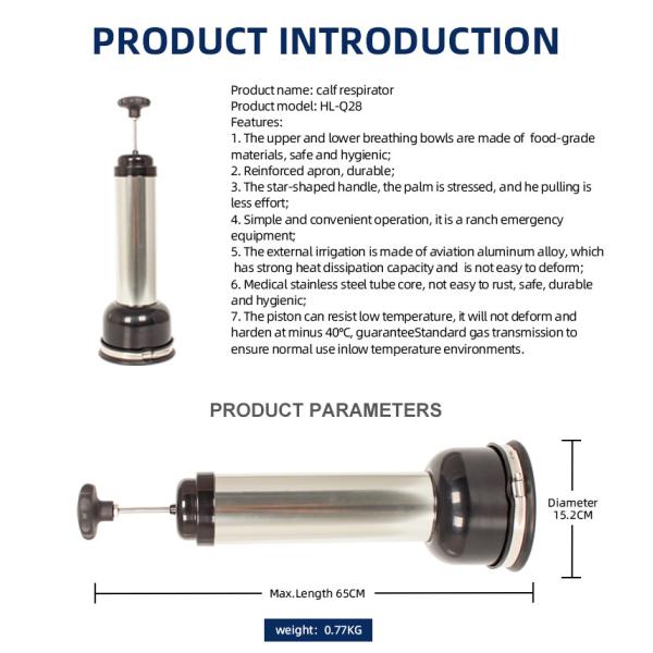 Overall, the Calf Respirator is an essential tool for any farmer looking to prevent calves from choking on amniotic fluid during birth. The product is lightweight, durable, and comfortable to use. Made from high-quality aluminum alloy and rubber cup material, the Calf Respirator is built to last and is designed to withstand harsh farming conditions. Don't wait any longer - get your hands on the Calf Respirator today!