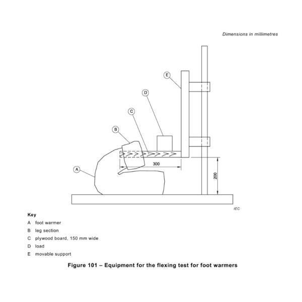 The foot warmers flexing test equipment is designed and manufactured according to IEC 60335-2-81 clause 21.101 and figure 101.