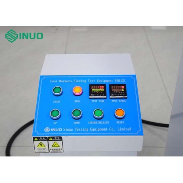 This test equipment is used to test whether the foot area of the foot warmer or the heating area of the heating mat can withstand the mechanical strength. After the test equipment is started, the testing will be started automatically, and the testing will be stopped after reaching the set number of times. It adopts button control and digital display, the drop is achieved at a rate of six times per minute automatically by electromagnet adsorption or release.