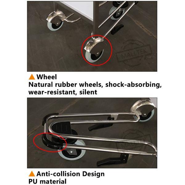 The trolley could nest to each other, for easier storage and less space requirement. It's easier for managers moving them, too, many trolleys could be pushed to the chosen place at one time, it saves a lot of time for management.