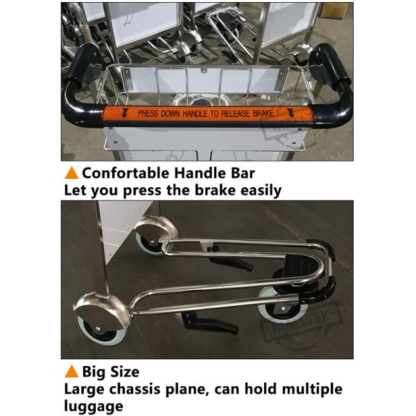 Airport Luggage Trolley Stainless Steel Airport Baggage Cart With Handle Brake
