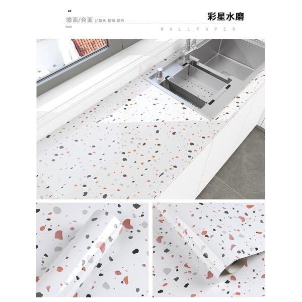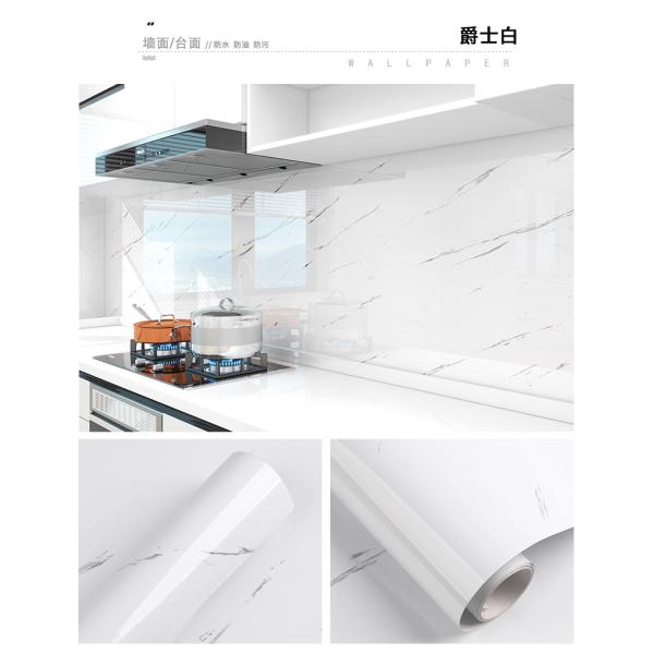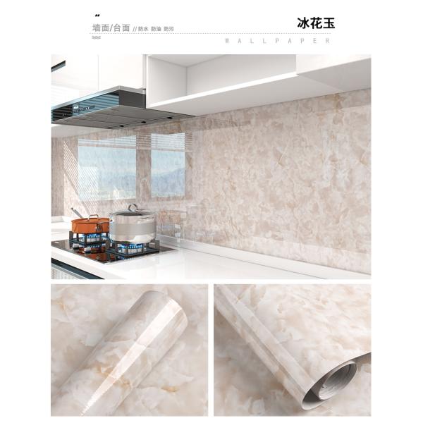 Oil Proof Silver Back Marble Film Self-Adhesive PVC Wallpaper for Kitchen Customized Length and 0.06mm Thickness Waterproof