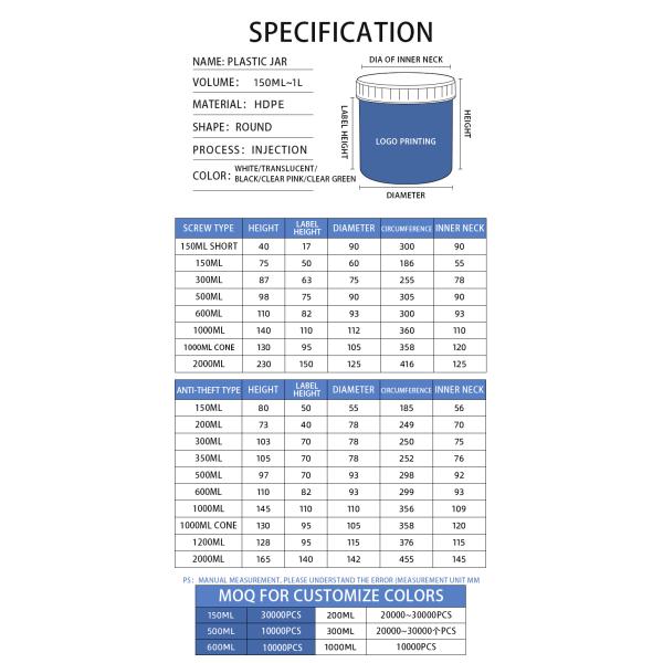 Matte Plastic Screw Top Jars Cosmetic Empty Containers 150ml Multi Color