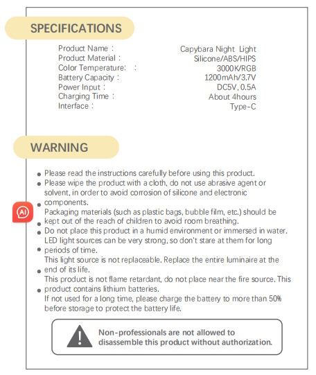 In summary, the DY JXJA049 Cute Night Light Lamp is perfect for bedtime, nap time, or any time your child needs a comforting glow. Its soft and durable design, easy charging, and safety certifications make it an excellent investment for any parent.