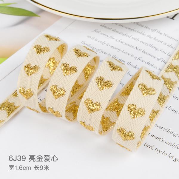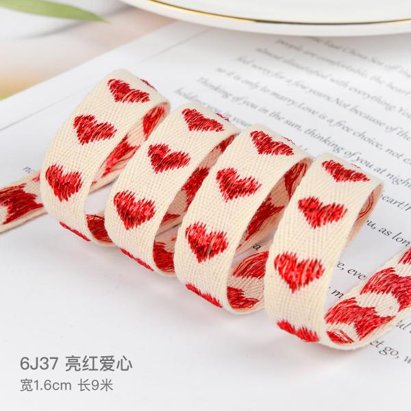 16mm*9m Heart Pattern Jacquard Cotton Ribbon for Gift Packing and Garment Accessories