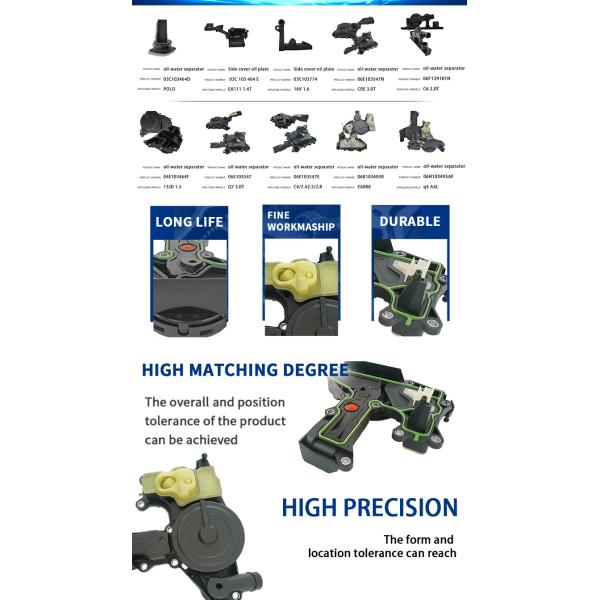 Oil separator 04E103464AA is an oil separator for FAW Audi A3/S3/Sportb./Lim.qu.2017-2021 cars. Its main purpose is to separate oil vapor and oil particles from the air entering the engine, thereby maintaining the normal operation of the engine. It is made of high-quality materials, has high reliability and durability, and can work stably for a long time. In addition, Oil separator 04E103464AA is easy to install and simple to use, and does not require the use of additional tools or equipment. It is a very practical and effective product that can effectively reduce engine wear and damage, thereby extending the service life of the engine. If you are a car lover, you must not miss this high-quality auto parts!
