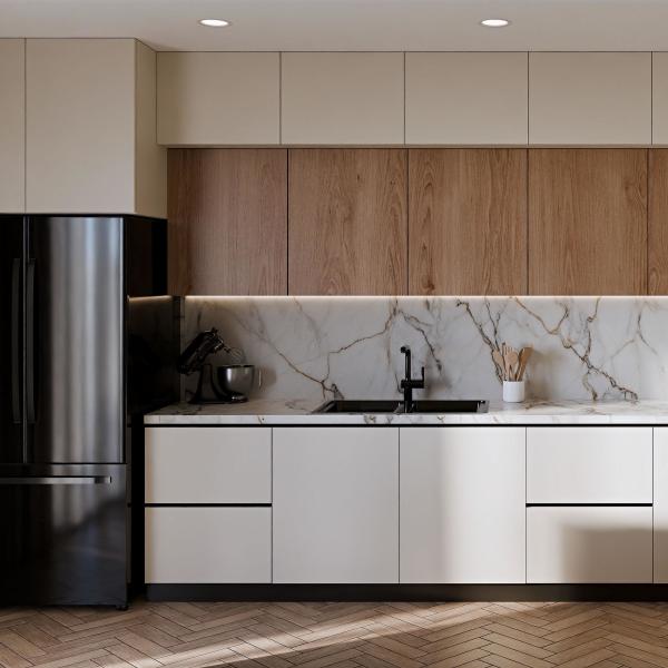 - Matt Finish: A matte melamine finish is modern and stylish, offering a smooth, non-reflective surface that is easy to clean and maintain. It creates a sophisticated and minimalist look, perfect for modern apartment kitchens.