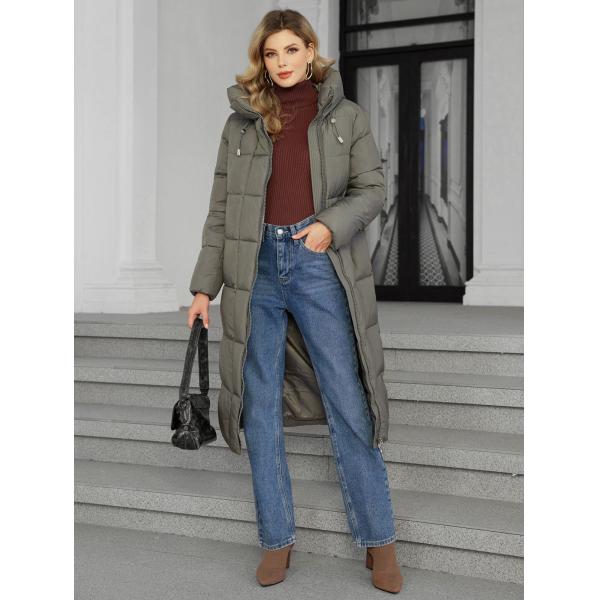 Buy Bio Fluff Woman Coat Hooded Thickened Long Cotton Coat with Slanted Placket and Pleats for Bio Fluff Women s Style, down or biddown coat at wholesale prices