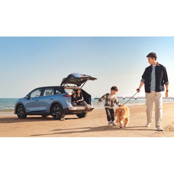 From the side, the side of the new car uses a two-color body design, and also integrates a number of fold line design, so that its side looks very tough. In addition, the new car also uses a hidden door handle and low wind resistance wheel shape. In the rear part of the car, the Qichen VX6 adopts the integrated through the taillight design, which is also highly recognizable after lighting, and the small spoiler design is used on the top of the car, with the blackened rear surround, and the sense of movement is full. In terms of body size, the length, width and height of the car are 4658/1890/1656mm, and the wheelbase is 2850mm.