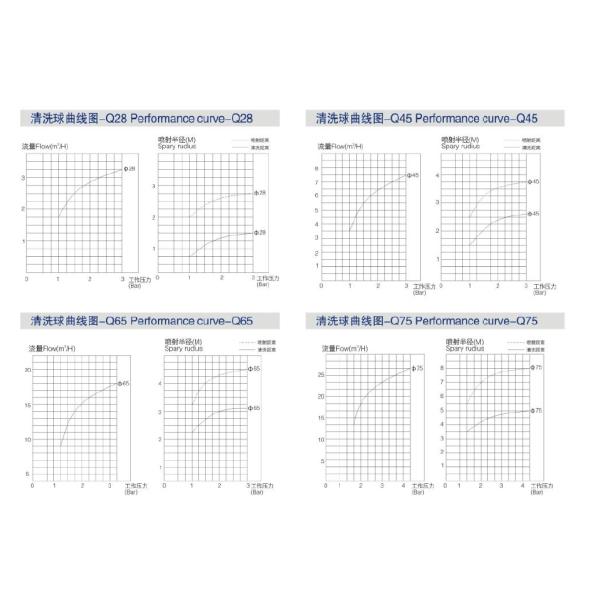 | Spray Radius(M) | Cleaning Radius(m) | Flow Rat(m³/H) | |||||