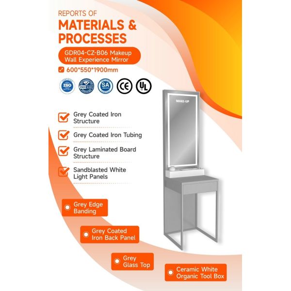 The structure is compact and easy to move and adjust; the countertop tool box is assembled from 5mm porcelain white organic material.